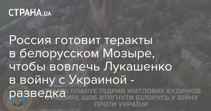 Россия готовит теракты в белорусском Мозыре, чтобы вовлечь Лукашенко в войну с Украиной - разведка
