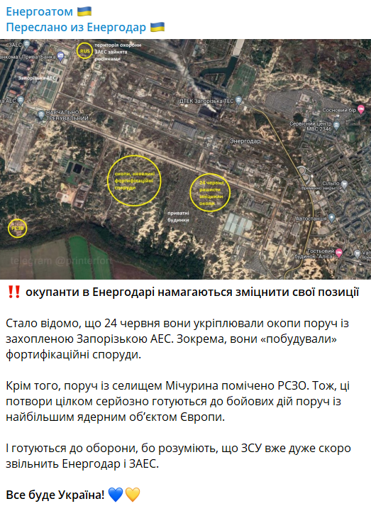 "Кроме того, рядом с поселком Мичурина замечено РСЗО. Они вполне серьезно готовятся к боевым действиям рядом с крупнейшим ядерным объектом Европы", - отметили в компании.