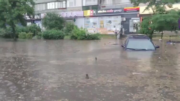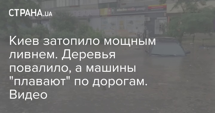 Киев затопило мощным ливнем. Деревья повалило, а машины "плавают" по дорогам. Видео