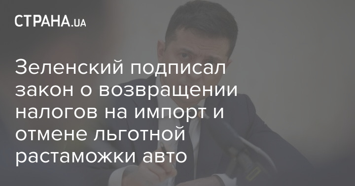 Президент Владимир Зеленский подписал закон, который предусматривает возврат пошлины и НДС на импортные товары, в том числе на автомобили.
