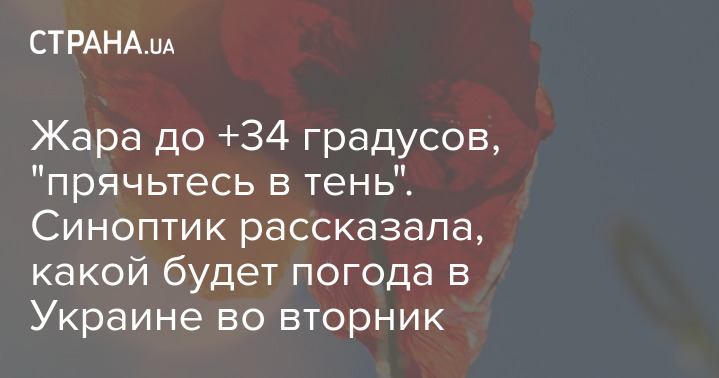 Во вторник, 5 июля, большинстве регионов Украины будет преобладать сухая и малооблачная погода, жара местами достигнет +34 градусов.