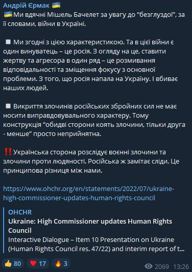 08:02 Верховный комиссар ООН по правам человека Мишель Бачелет вчера сделала несколько заявлений о нарушениях международного гуманитарного права в Украине.