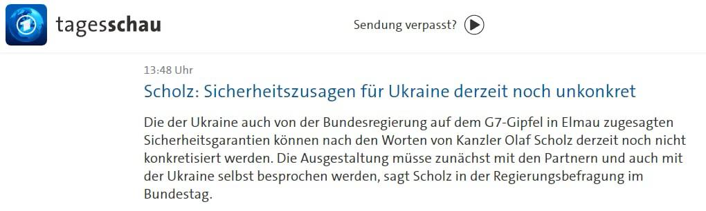 «Шольц заявил, что Германия входит в число стран, готовых предоставить Украине гарантии безопасности, хотя, добавил он, "они не будут такими, которые соответствовали бы 5-й статье Североатлантического договора"», – сообщает издание.