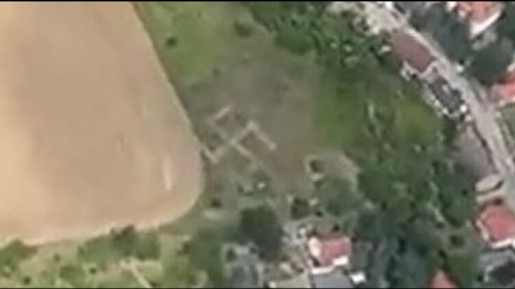 Нацистский символ обнаружили во вторник вечером в поле в Нидерфинове в районе Барним к северо-востоку от Берлина журналисты издания, пролетая на частном самолете.