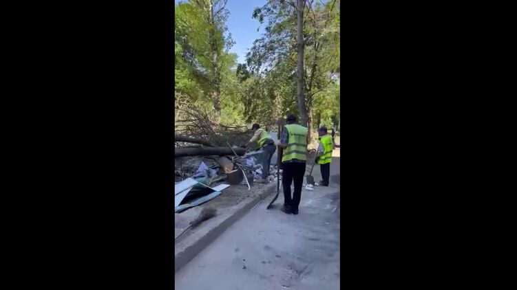 Коммунальщики ликвидируют последствия обстрела. Скриншот из видео
