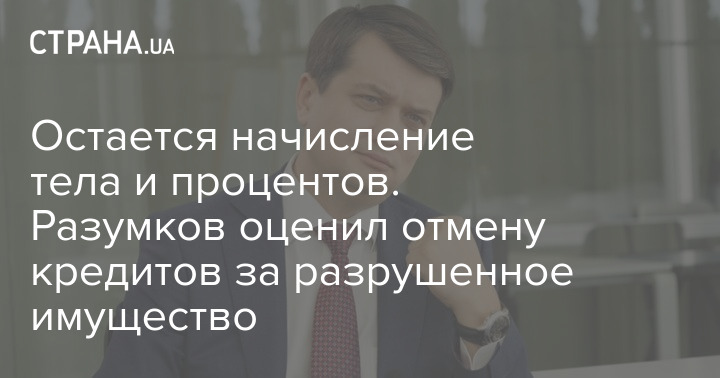 Разумков прокомментировал принятой Радой законопроект об отмене выплат по кредитам за разрушенное и поврежденное имущество. Фото: slovoidilo.ua