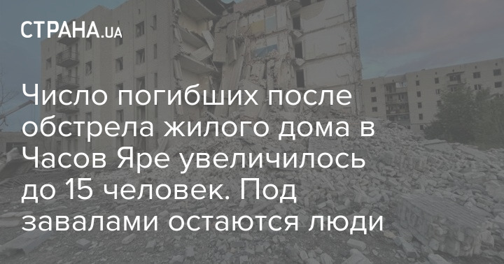 Число погибших после обстрела жилого дома в Часов Яре увеличилось до 15 человек. Под завалами остаются люди