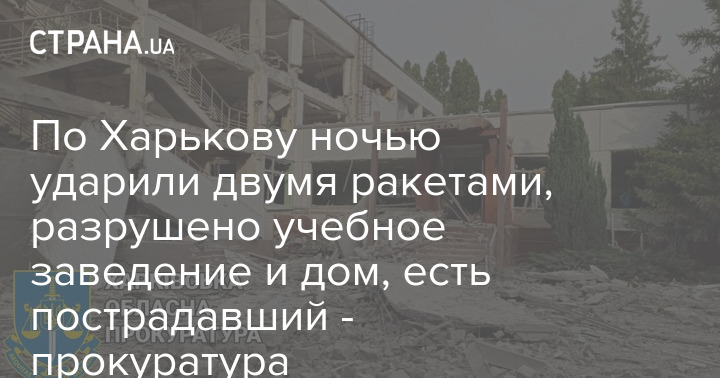 По Харькову ночью ударили двумя ракетами, разрушено учебное заведение и дом, есть пострадавший - прокуратура
