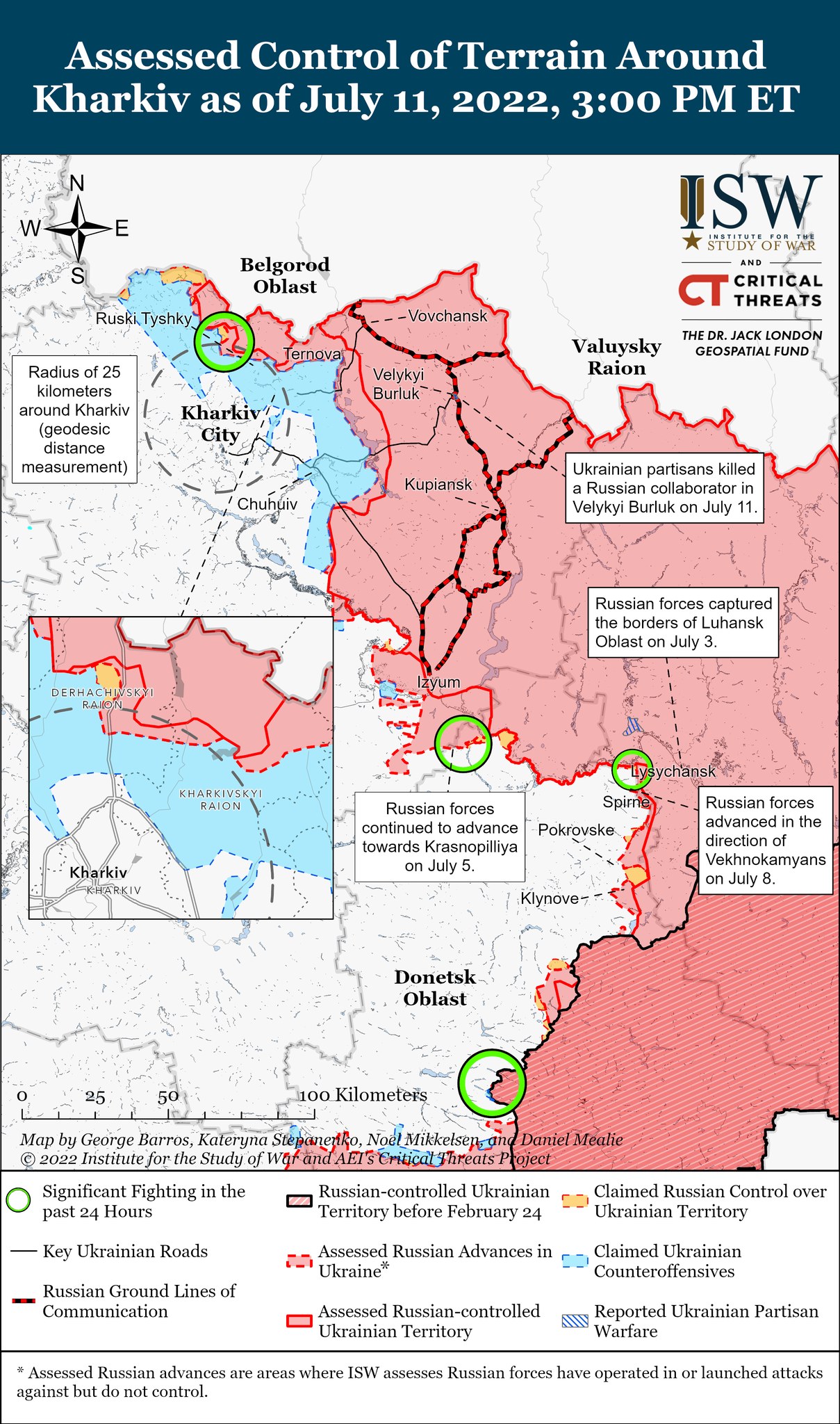 Кроме того, войска РФ првели локальные наземные атаки к северо-западу от Харькова. Также они продолжали сосредотачиваться на оборонительных операциях на юге Украины.
