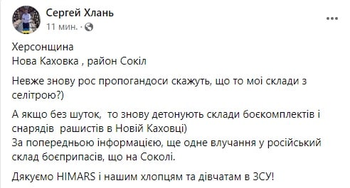23.20 "Прилеты" в Новой Каховке подтвердили и советник главы Херсонской ОВА Сергей Хлань, и представители "администрации" Херсонской области, контролируемой россиянами.