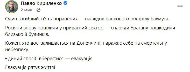 Тем временем в местных пабликах пишут о сильном обстреле Бахмута и сегодня вечером.