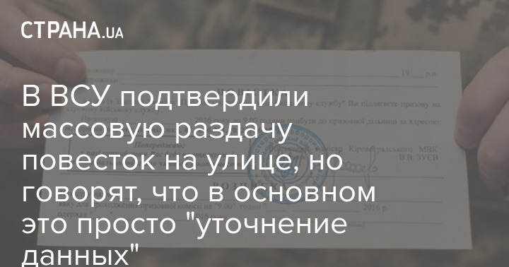 Начальник управления персонала Сухопутных войск Роман Горбач заявил, что в 90% случаев повестки на улицах украинцам выдаются для "уточнения данных", а не моментального призыва.