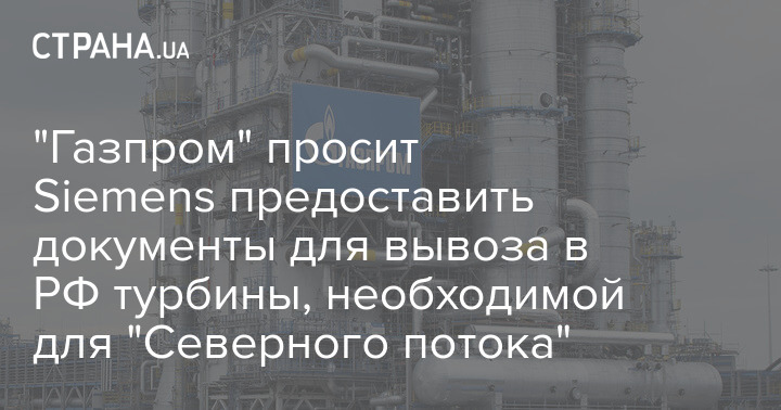 Российский "Газпром" обратился к компании Siemens с просьбой предоставить документы на газотурбинный двигатель для газопровода "Северный поток", позволяющий вывезти ее в Россию из Канады.