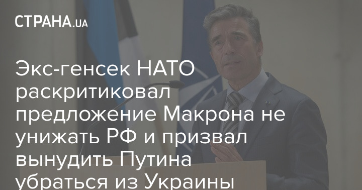 Предложение не унижать РФ Расмуссен назвал "катастрофическим". Также экс-генсек НАТО критикует Макрона за его неудачные попытки "провести телефонную дипломатию с Путиным".