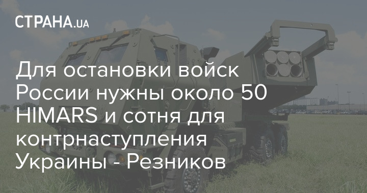 Для эффективного контрнаступления, по подсчетам Резникова, Украине необходимо около 100 пусковых установок HIMARS, а также дополнительные БТР, БМП и разведывательные беспилотники.