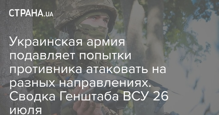 Генштаб ВСУ представил оперативную информацию о ситуации в зонах боевых действий по состоянию на 18:00 26 июля. ВСУ успешно отразили несколько попыток вражеского штурма.