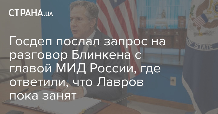 Госдепартамент официально запросил разговор госсекретаря Энтони Блинкена с министром иностранных дел РФ Сергеем Лавровым.