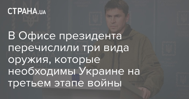 В Офисе президента перечислили три вида оружия, которые необходимы Украине на третьем этапе войны