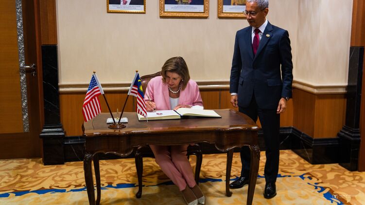 Появилось видео Пелоси на Тайване. Ее встретили люди в масках цветов флага Украины