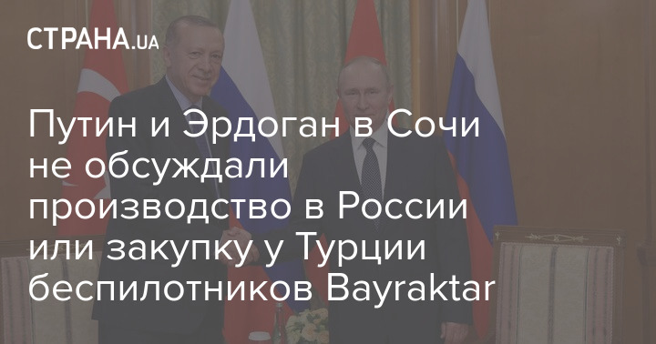 Президенты России Владимир Путин и Турции Реджеп Тайип Эрдоган не обсуждали в Сочи тему возможного производства в России или закупку у Турции беспилотников Bayraktar.