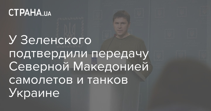 Советник Офиса президента Украины Михаил Подоляк официально подтвердил факт передачи Северной Македонией самолетов и танков, о чем ранее сообщалось в СМИ.