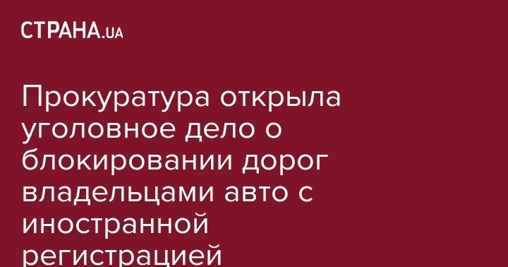 Сообщается, что ужгородской и тячивской местными прокуратурами осуществляется процессуальное руководство в уголовном производстве по факту блокирования транспортных коммуникаций (ч. 1 ст. 279 УК Украины). Речь идет о блокировке владельцами автомобилей с иностранной регистрацией транспортных коммуникаций вблизи украинско-словацкой и украинско-румынской границы путем устройства препятствий, которое нарушило нормальную работу транспорта - наказывается штрафом от пятидесяти до ста пятидесяти необлагаемых минимумов доходов граждан или исправительными работами на срок до двух лет, или арестом на срок до шести месяцев, или ограничением свободы на срок до трех лет.