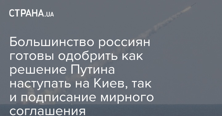 Большинство россиян готовы одобрить как решение своего президента Владимира Путина наступать на Киев, так и прекращение "спецоперации" с подписанием мирного соглашения. Но мало кто готов лично воевать или хотя бы просто жертвовать деньги на войну.