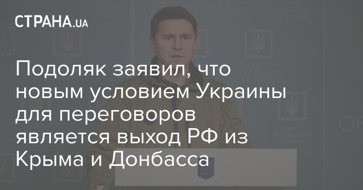 Подоляк заявил, что новым условием Украины для переговоров является выход РФ из Крыма и Донбасса