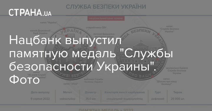 Нацбанк выпустил памятную медаль "Службы безопасности Украины". Фото
