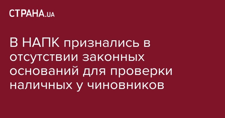 В НАПК признались в отсутствии законных оснований для проверки наличных у чиновников