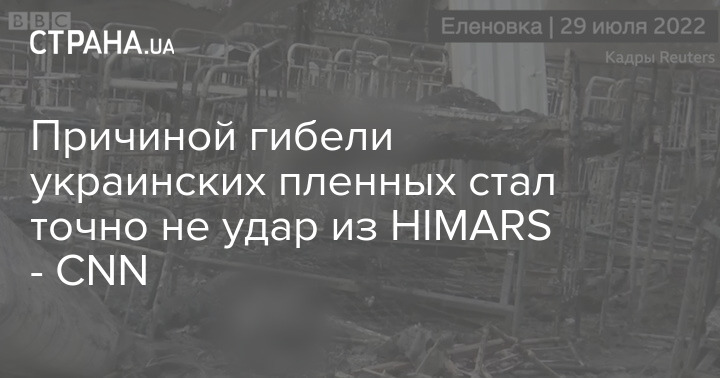 Американский телеканал CNN провел расследование гибели украинских 53 пленных в Еленовке и утверждает о несостоятельности российской версии произошедшего, что это был удар ВСУ из HIMARS.