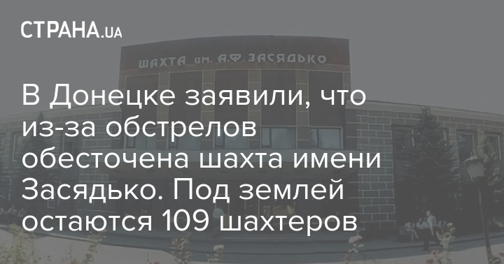 В Донецке заявили, что из-за обстрелов обесточена шахта имени Засядько. Под землей остаются 109 шахтеров