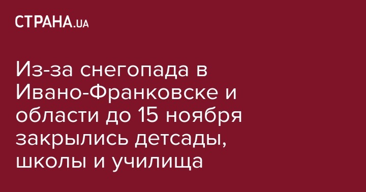 Ивано-Франковская областная государственная администрация приняла решение приостановить учебу в школах из-за непогоды до вторника, 15 ноября. Об этом сообщают "Украинские Новости".