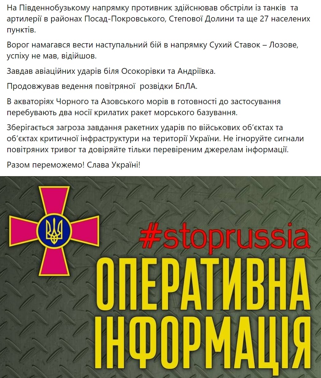 Скриншот из Фейсбука Генштаба ВСУ, с.1Скриншот из Фейсбука Генштаба ВСУ, с.2