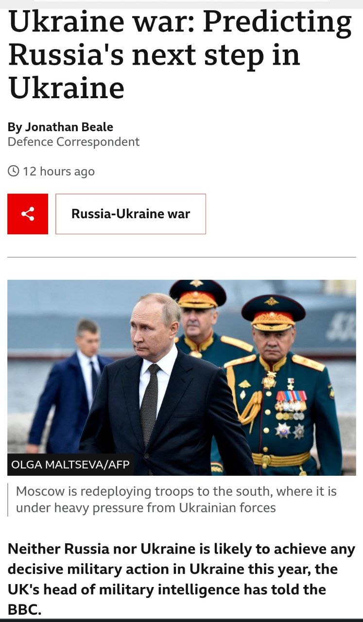 08:14 Россия и Украина вряд ли добьются каких-либо решительных военных успехов  в этом году, заявил Би-би-си глава военной разведки Великобритании Джим Хоккенхалл.