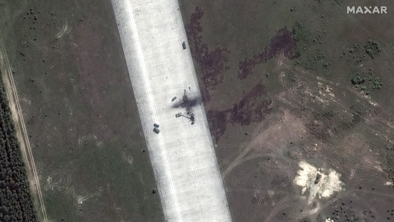 09:27 Спутниковые снимки белорусского военного аэродрома Зябровка, где на днях слышали взрывы.