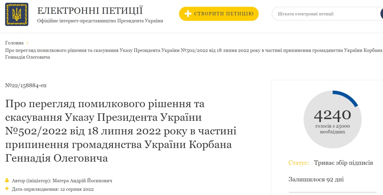 Горько осознавать, что президент Владимир Зеленский, мужественно руководящий нашей борьбой за свободу и независимость, прибегает к советской тоталитарной практике лишения гражданства против своих политических оппонентов".