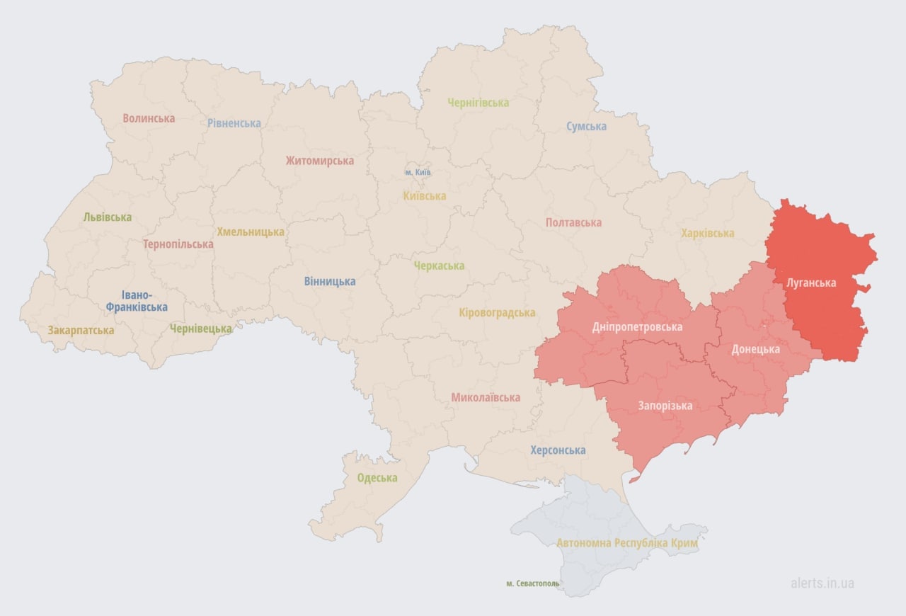 11:33 В Днепропетровской, Запорожской и Донецкой областях звучит сигнал воздушной тревоги.