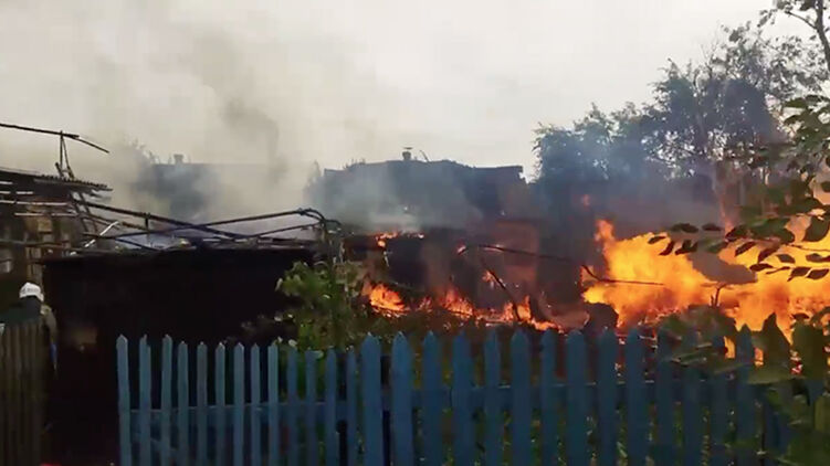 Судя по видео, пожар начался на территории частного домовладения. Скриншот из видео