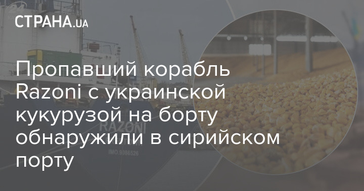 Пропавший корабль Razoni с украинской кукурузой на борту обнаружили в сирийском порту