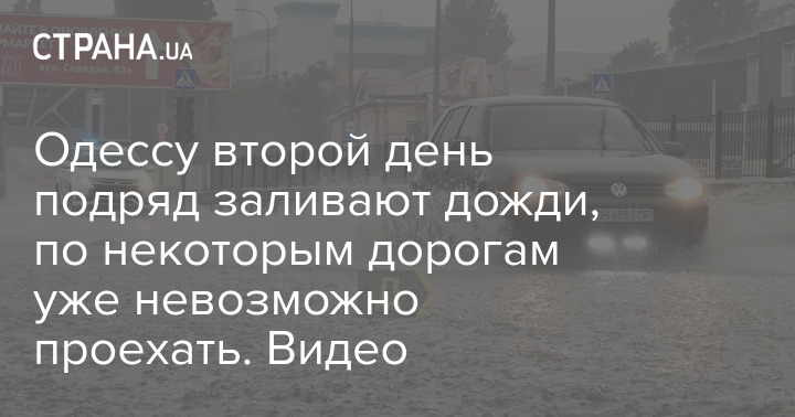 Одессу второй день подряд заливают дожди, по некоторым дорогам уже невозможно проехать. Видео