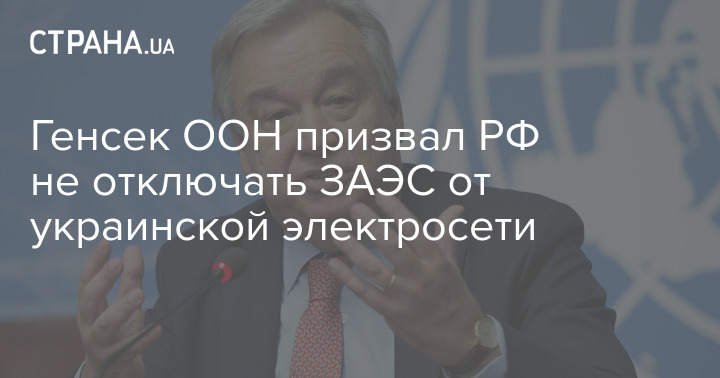 Генеральный секретарь ООН Антонио Гуттериш обратился к российским властям с призывом не отключать Запорожскую атомную станцию от украинских электросетей.