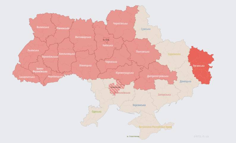 22:59 Карта воздушных тревог Украины показала тревогу в Крыму.