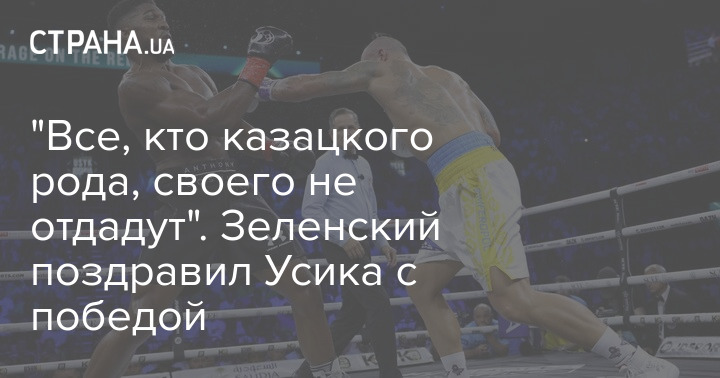 "Тяжелая, но такая важная и нужная Победа Александра Усика! Защита титула чемпиона мира – символ того, что все, кто казацкого рода, своего не отдадут, будут сражаться за это и обязательно победят!", - написал президент Украины Владимир Зеленский на своей странице в Facebook.