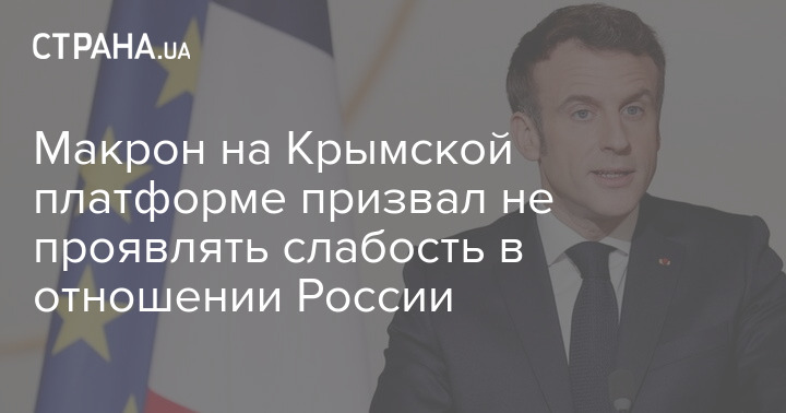 Президент Франции Эммануэль Макрон в ходе онлайн-выступления на саммите "Крымской платформы" призвал не проявлять слабость в отношении России и не идти с ней на компромиссы.