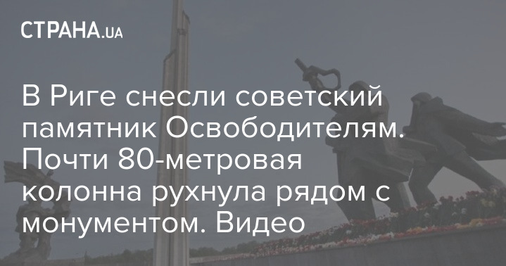В Риге снесли советский памятник Освободителям. Почти 80-метровая колонна рухнула рядом с монументом. Видео