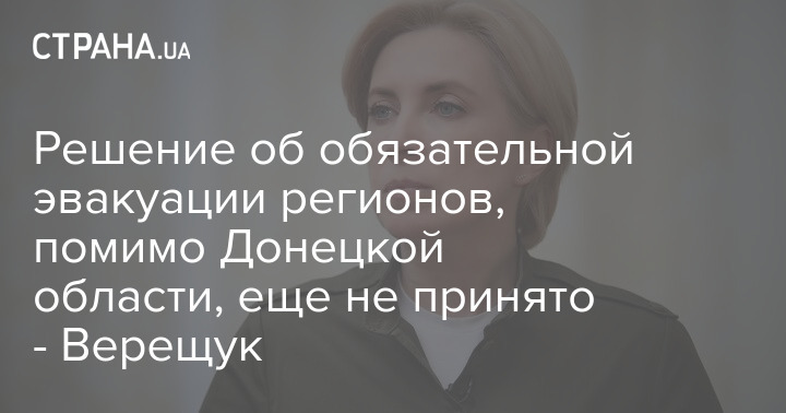Решение об обязательной эвакуации регионов, помимо Донецкой области, еще не принято - Верещук