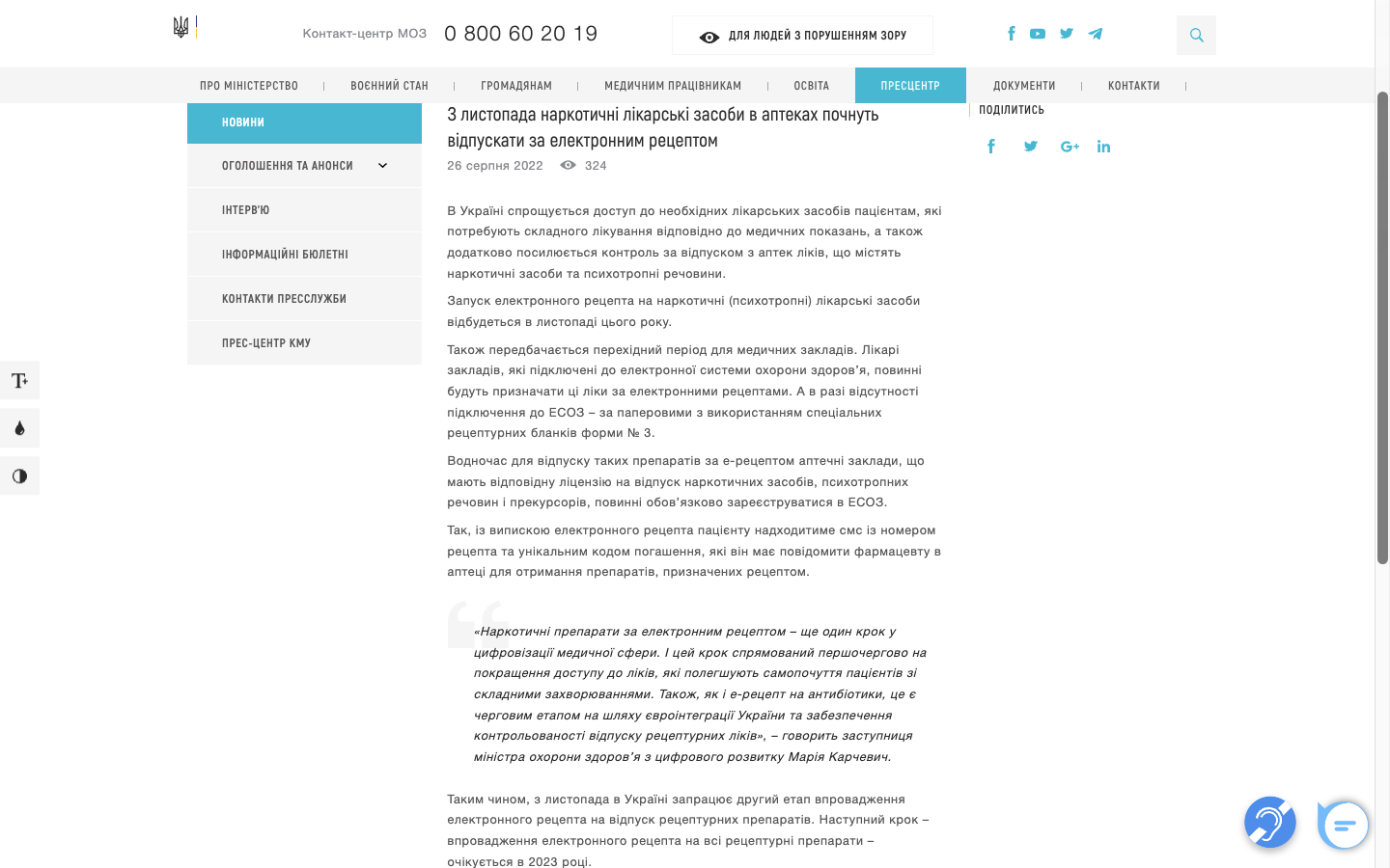 В украинских аптеках с ноября начнут отпускать наркотические лекарства по электронному рецепту. После получения электронного рецепта пациенту придет смс с уникальным кодом, который он должен будет сообщить фармацевту в аптеке.