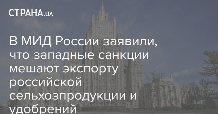 В МИД России заявили, что западные санкции мешают экспорту российской сельхозпродукции и удобрений