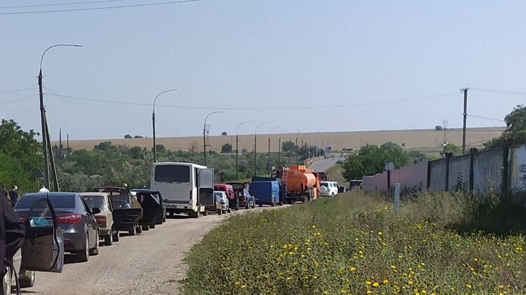 Очередь авто из Дарьевки в Херсонской области. Фото: Телеграм